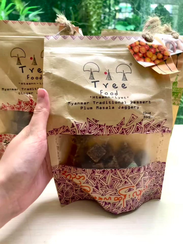 Toddy Palm Jaggery (Htaann-Lyet) is a traditional Myanmar sweet often enjoyed after meals to aid digestion. Made from the sap of toddy palm trees, it’s a popular natural snack, especially in central Myanmar. The sap is boiled down into syrup and shaped into jaggery balls. Tree Food offers a modern take on this treat, blending jaggery with natural extracts and powders — all homemade, with no added preservatives or artificial ingredients.